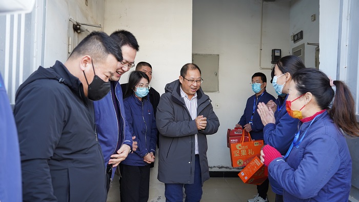“新年好!新年好!”每到一處都和大家親切交談,詳細詢問了大家的工作生活等情況,并送上了新春慰問品。