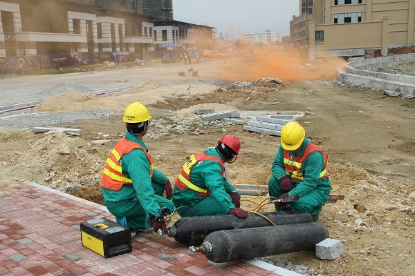 當天上午9:30,管網(wǎng)部2652111值班搶險電話驟響:“位于萬科小區(qū)附近,燃氣管道在施工過程中不慎挖破,造成燃氣泄漏著火,請盡快搶修處理”。值班人員隨后立即向119報警并上報運行中心總監(jiān)黃劍鋒,黃總監(jiān)接到通報后立即啟動公司突發(fā)事故應急預案,并向曠遠能源總經(jīng)理姜升科匯報事故發(fā)生情況。事故發(fā)生15分鐘后,各應急處理小組奔赴現(xiàn)場,各就各位:泄漏源控制小組立即疏散現(xiàn)場人員、設立警戒,緩緩關閉上下游閥門并通入氮氣進行置換;消防小組配合消防利用水槍進行管道降溫和燃氣驅(qū)散;搶修組人員在確認燃氣濃度降低到安全下限后立即對燃氣管進行修復,并在冷卻后進行試壓檢查;控制小組使用檢測儀對著火點附近進行濃度檢測,確保周邊環(huán)境安全后恢復正常供氣。