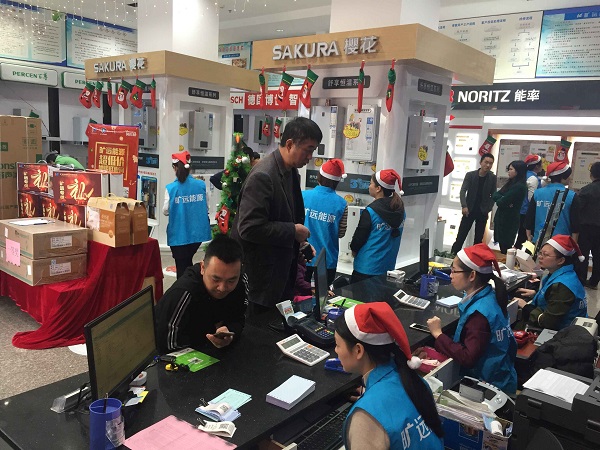 為持續(xù)性開展曠遠(yuǎn)能源燃?xì)饩咪N售宣傳工作,以回饋廣大燃?xì)庥脩簦?017年12月23日,曠遠(yuǎn)能源客服部在曠遠(yuǎn)營業(yè)廳舉辦了“雙蛋大狂歡,年底無底線”團(tuán)購會(huì)活動(dòng),現(xiàn)場(chǎng)共吸引百余名業(yè)主前來參加選購。